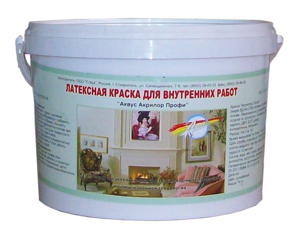 Матовая латексная краска для внутренних работ по штукатурке, гипсокартону, бетону, кирпичу, дереву, ДСП. Влагостойкость средняя. Расход 140г/м2.